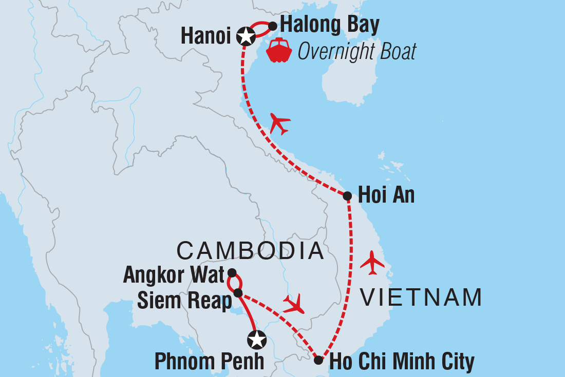 The best of Cambodia and Vietnam is unveiled on this journey from Phnom Penh to Hanoi. Discover the region's culture and beauty as we visit the stunning ancient temples of Angkor, and be immersed in Vietnam's markets and vibrant streets. Add to the adventure an overnight boat stay on Halong Bay, friendly locals and lots of scrumptious food - the only thing left to do is choose when to go.