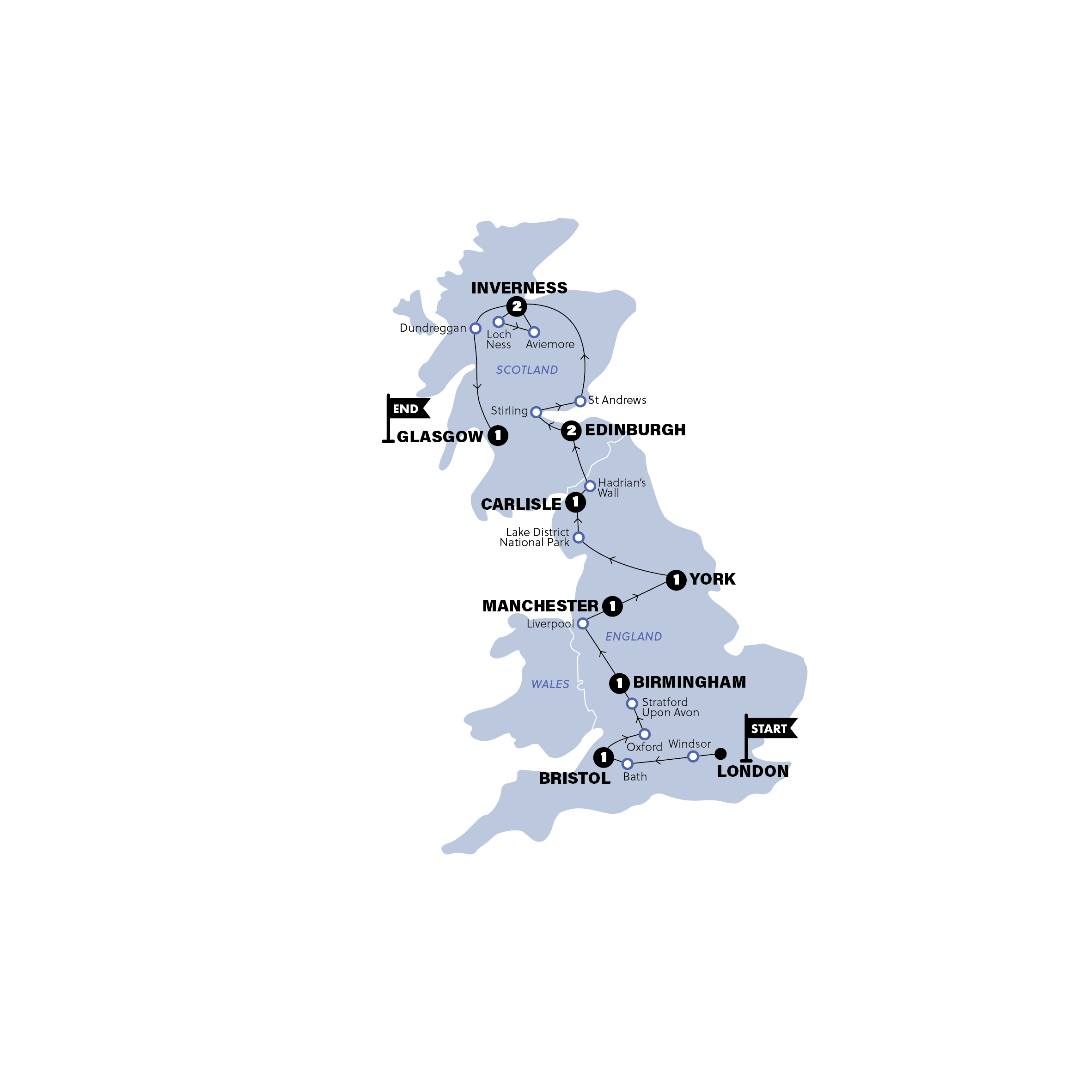 The trip sadly comes to an end after breakfast in Glasgow. It’s time to say bye to your new travel squad and plan the next journey. Or if you've chosen to end in London, catch the train back to London, where the trip ends upon arrival.