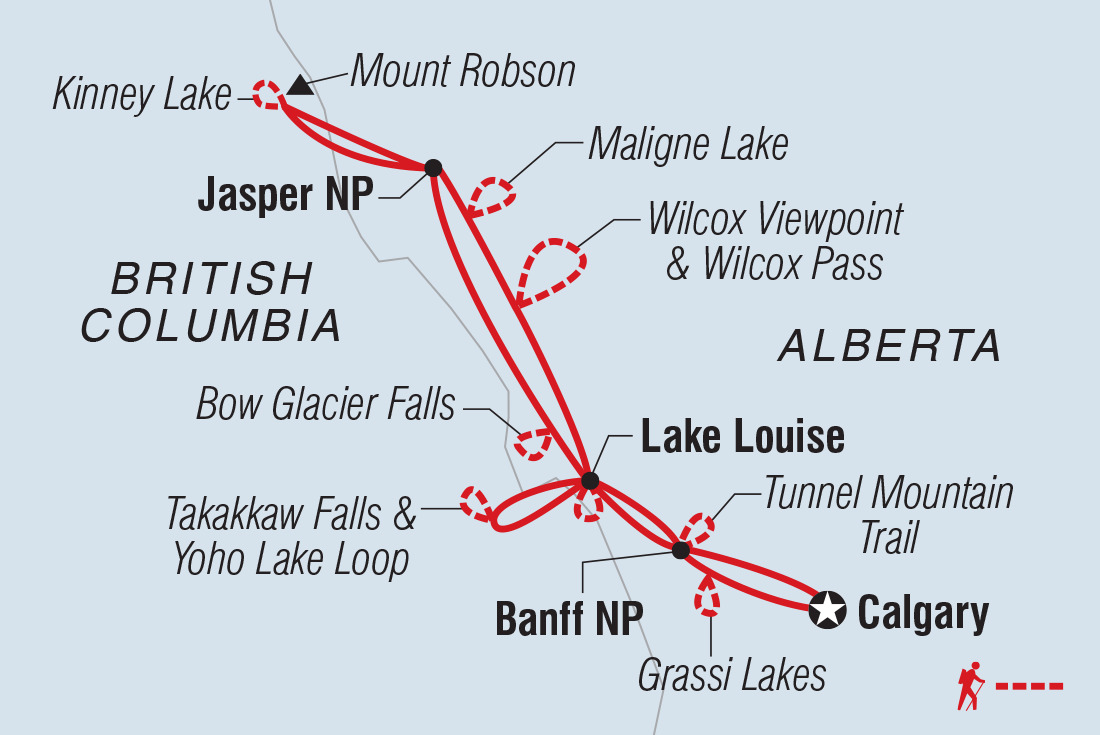 Leave Banff behind this morning and make your way to the start of the Grassi Lakes Trail, your final hike of the trip. It’ll be a short and easy walk, as you follow the trail through evergreen forest to start, pass by an impressive waterfall and then reach the striking colours of Grassi Lakes. The turquoise waters are the perfect place to reflect on the trip that’s been! After, head back to Calgary, where your adventure will come to an end.