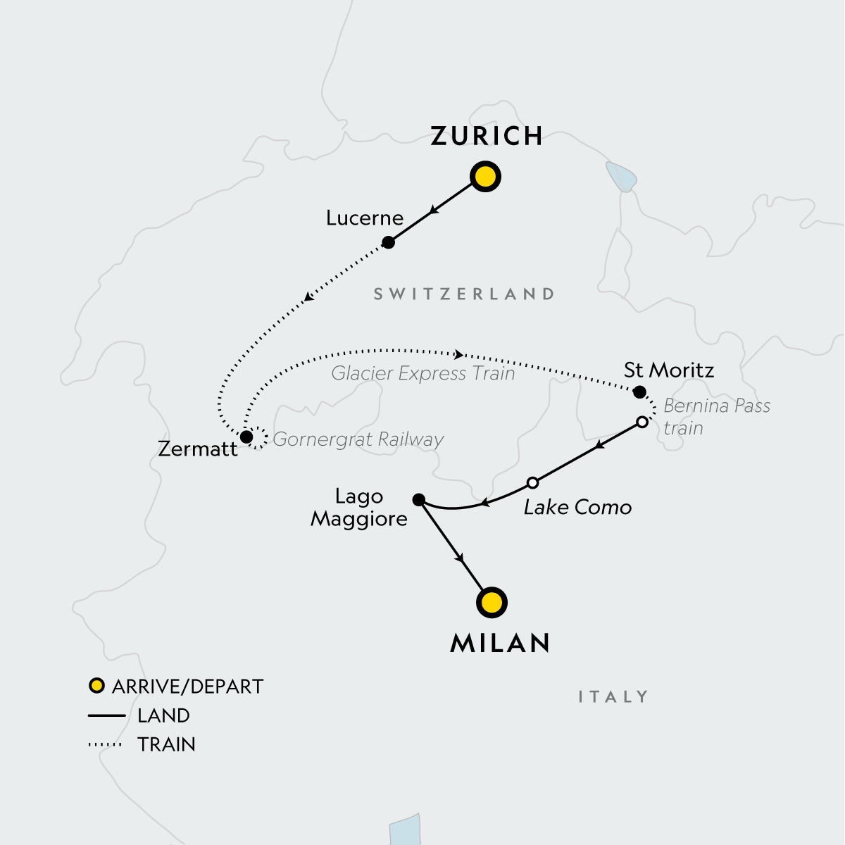 Traverse the majestic Swiss Alps and Italian Lakes on iconic rail journeys. Witness the marvel of mountain engineering as you glide past snow-capped peaks and secluded villages. Absorb the pioneering spirit of early mountaineers and explore the historic villas and islands dotting Lake Maggiore. Immerse yourself in the region's culture, absorbing the grand spectacle of this Alpine wonderland.